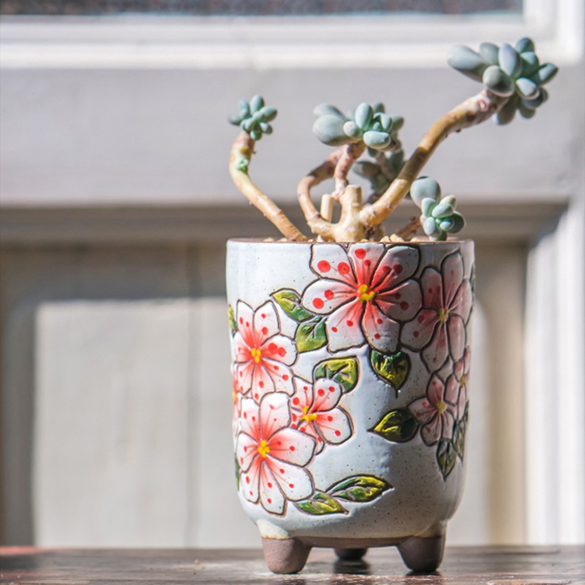 延禧手绘粗陶花盆+小老桩多肉植物,这是什么样的神仙搭配?!文艺、复古又优雅美丽,宛如一位端庄的女子般美丽,极具气质。