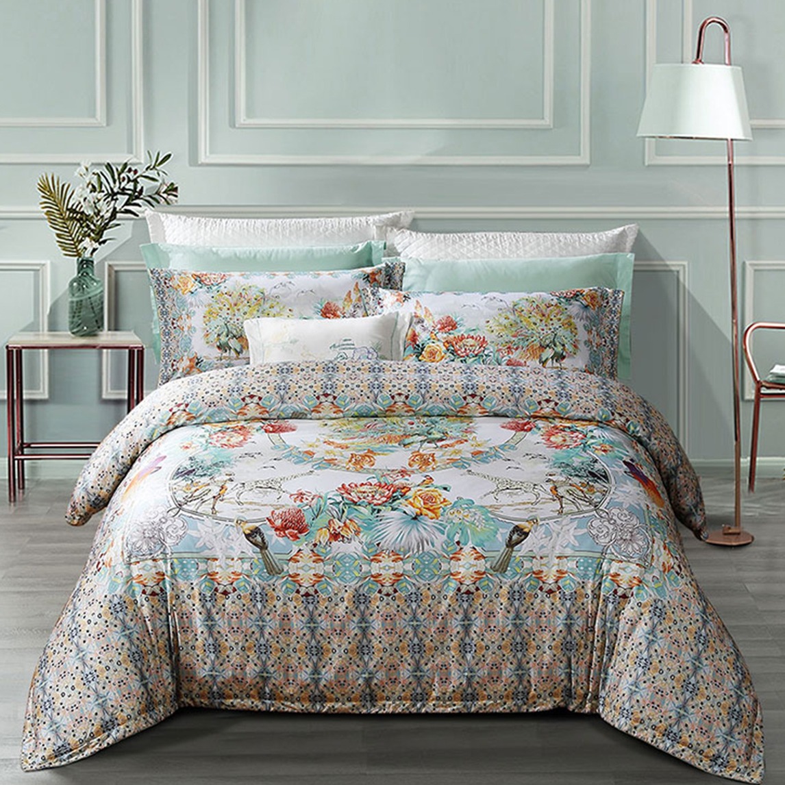 欧式图腾纹样印花色彩艳丽,富有艺术气息。采用优质匹马棉面料制作而成,手感柔软,质地细腻,透气性能强劲,带来舒适的睡眠享受。