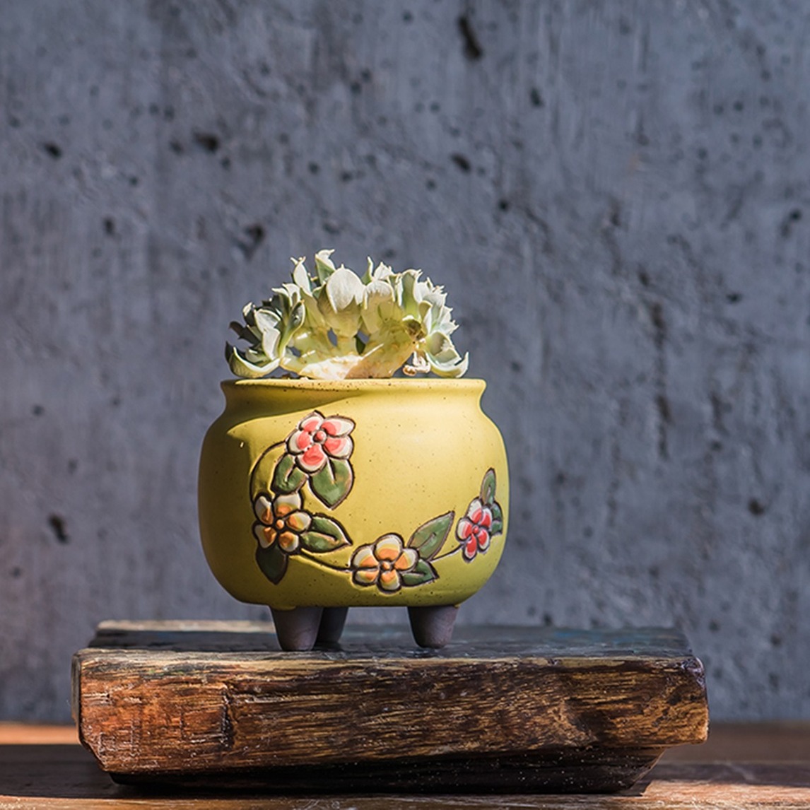 这胖嘟嘟的也忒可爱了吧,圆圆胖胖的身材,艳丽的色彩,再种上肉嘟嘟的多肉,一下子就唤起了你我的少女心。