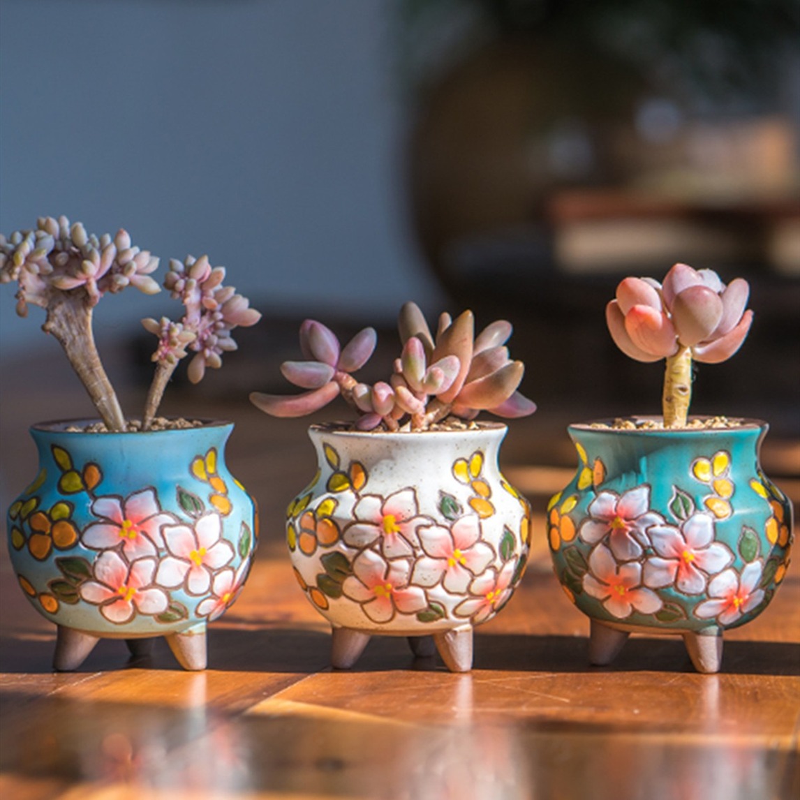 延禧手绘粗陶多肉盆,精美的手绘图案,复古粗陶材质,再种上美丽的肉肉,打造客厅里的文艺复古风,这样的美,让人难以抗拒。