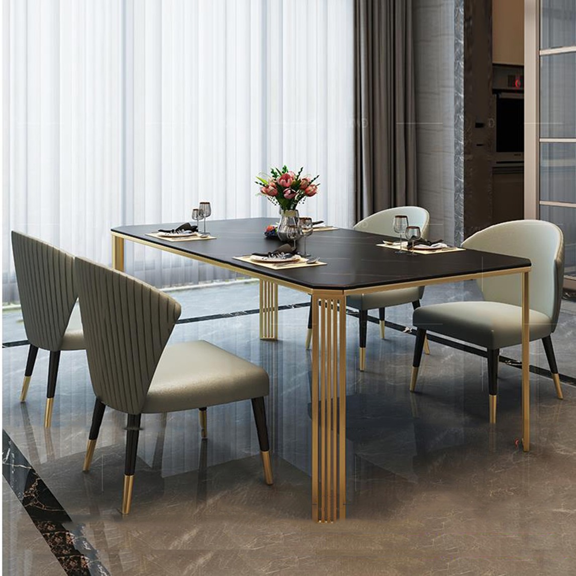 在北欧餐厅简约的空间里, 通过材质、色彩的运用和软装的搭配将轻奢风打造得淋漓尽致。大力运用到金属色表现光影的和谐,让时尚、轻奢成为这个空间的一大亮点