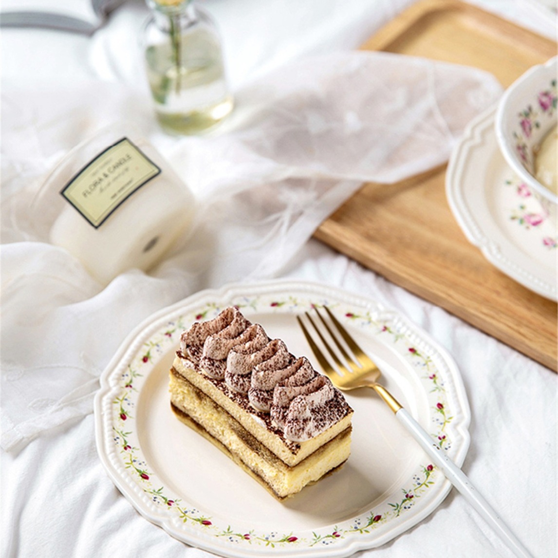 浪漫的法式碎花陶瓷盘,用它盛放各种美食,摆在餐桌上,自然流露出满满格调,花瓣的形状与花朵图案相互呼应,为餐桌带来美好的氛围。