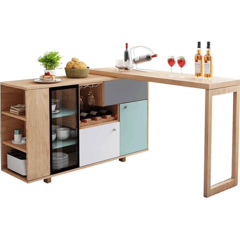 餐厅斗柜,留空出空层或展示架,可以作为摆放水壶、水杯的位置,也可以作为花瓶、展示品的格架,增添餐厅空间的实用与优雅气氛。