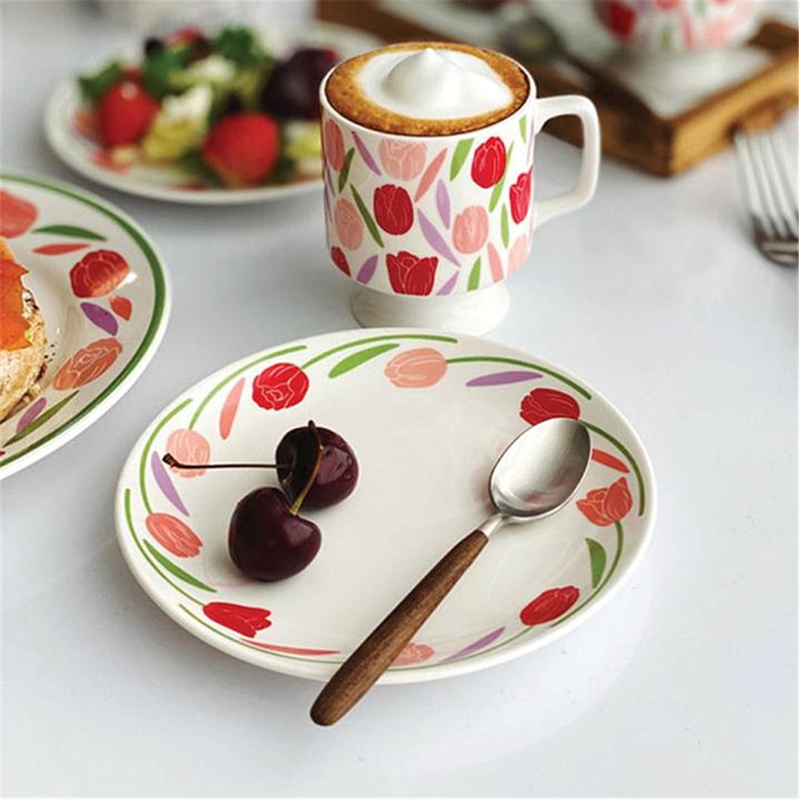 清新的郁金花餐盘,釉下彩工艺制作,不易褪色,健康环保,柔和的色调与美食很合拍,轻松打造出美好的餐桌氛围。