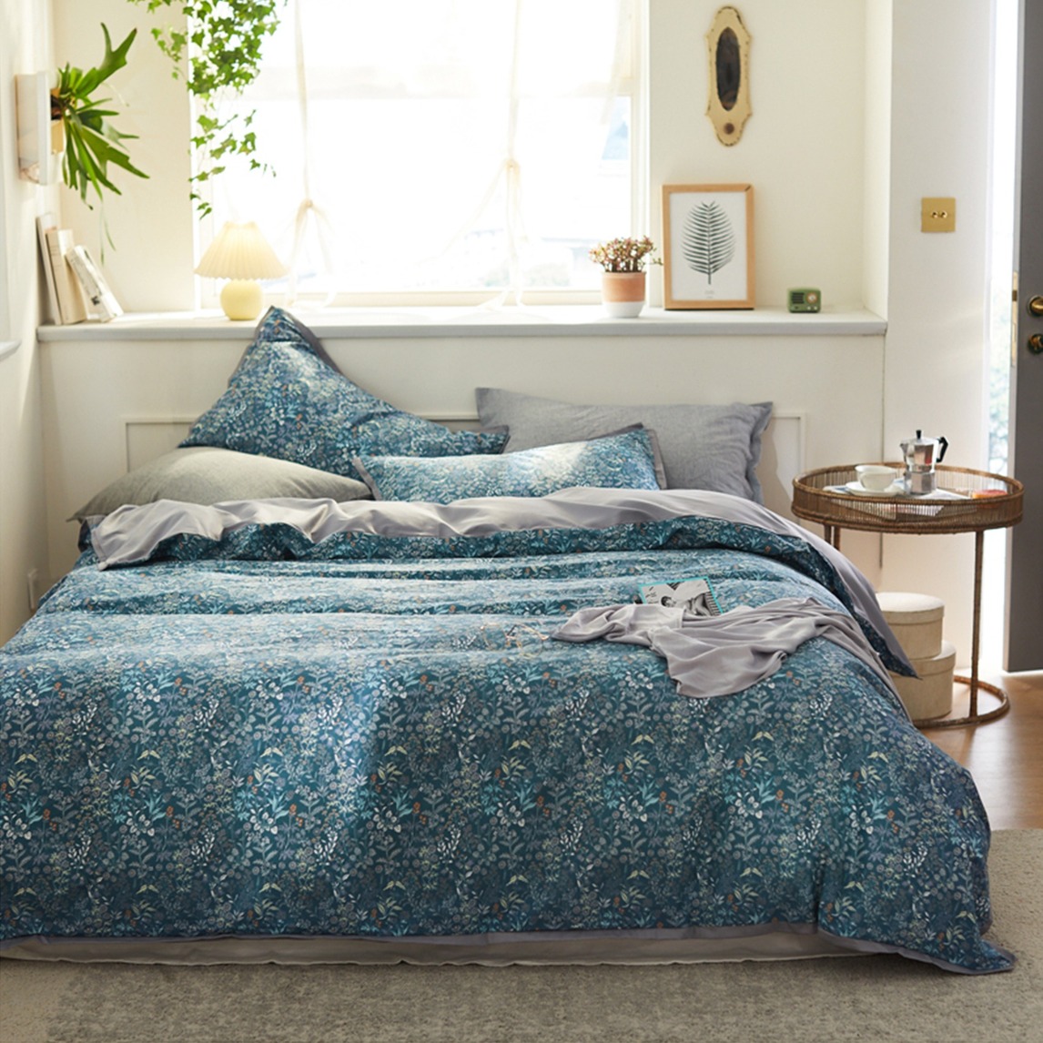 这是一款温馨风满满的四件套,选用深邃蓝色和紫色搭配,采用高档柔软的棉质材质,加上密布的薰衣草印花,浪漫有格调,很是温馨!每天在这样的小卧室里睡觉,更加温暖舒心!