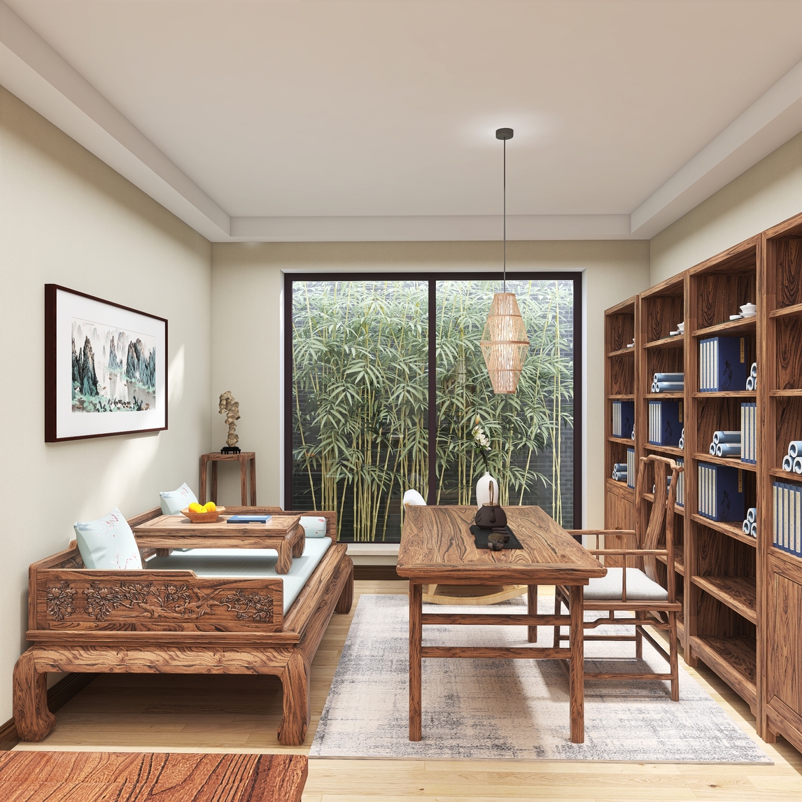 新中式风格的书房, 端庄素雅, 使人凝神静气, 非常适合情绪紧张的现代都市人。 而且中式风格所沉淀出的文化底蕴, 也最能体现在书房的设计上。