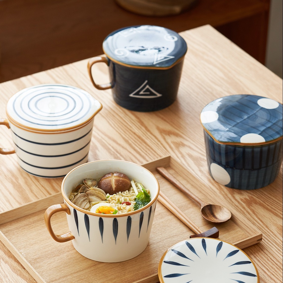 日式手绘带盖面碗,打造温馨餐桌