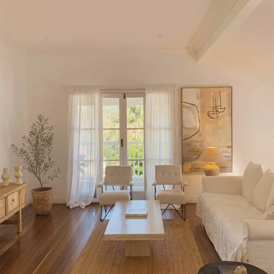 落地窗和白纱帘的神仙搭配,有一种仙气飘飘的感觉,微风吹起就像大片一样。客厅的布艺沙发没有任何装饰,有一种极简的美感,让客厅既有风格又干净利落!整体看上去浪漫又温馨~