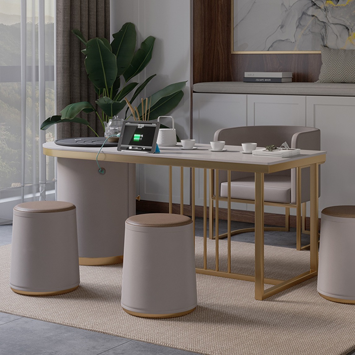 轻奢风茶室背景石材似尽情挥洒的水墨般隽永,辅以素色的装饰画,抽象与具象形成对比。白色的山形摆件与花瓶,一股浓浓的轻奢风情扑面而来。
