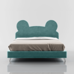 山形门,造型新颖有活力; 莫兰迪蓝护墙板,保暖隔音; 抱抱熊儿童床,柔软舒适; 合理利用空间,一房多功能。