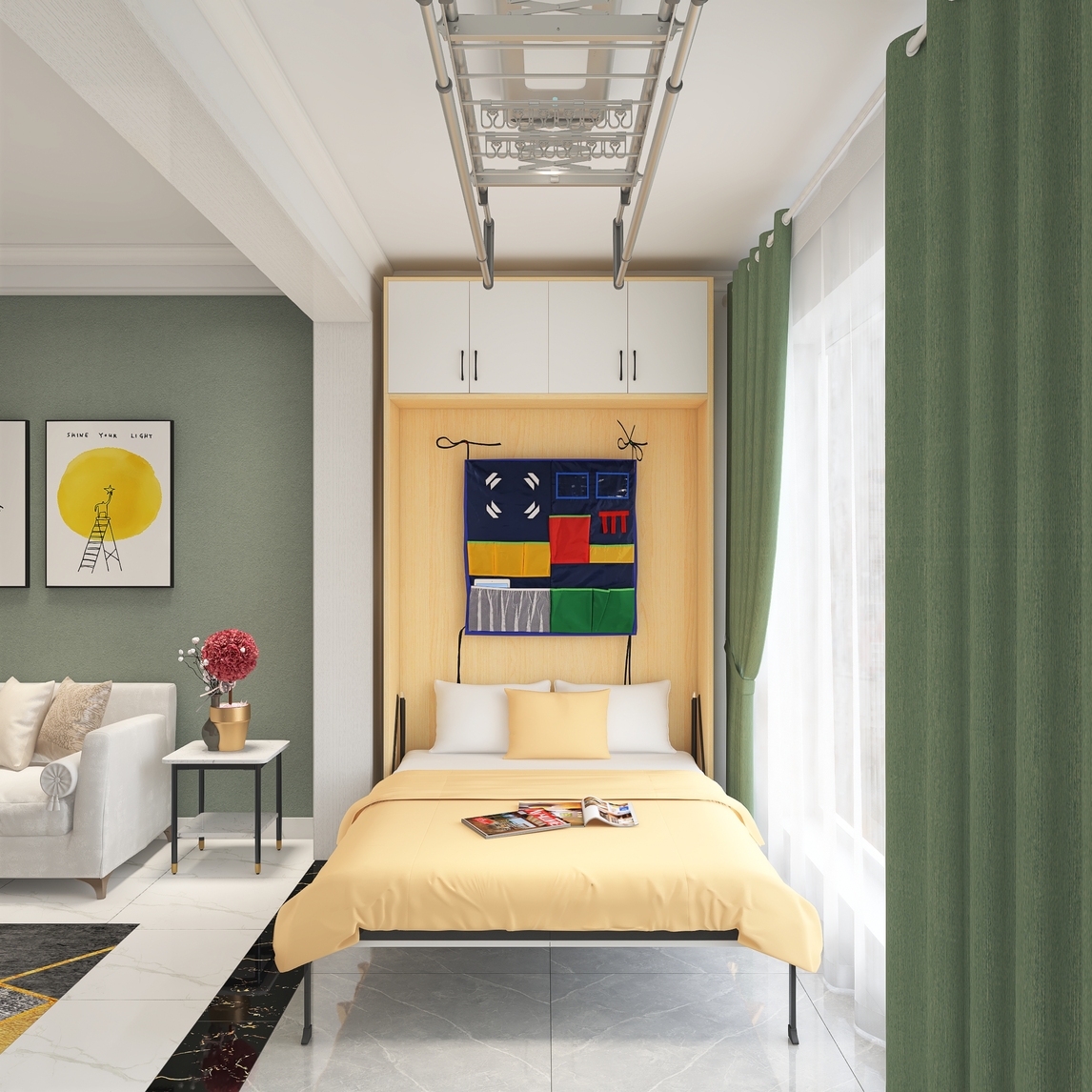 现代家居中,多功能空间越来越受到青睐。阳台除了晾晒和休闲外还可以有卧室的功能。折叠床不用时收起,不占空间,还能储物,再搭配收纳挂袋,手机等物品不再无处安放。
