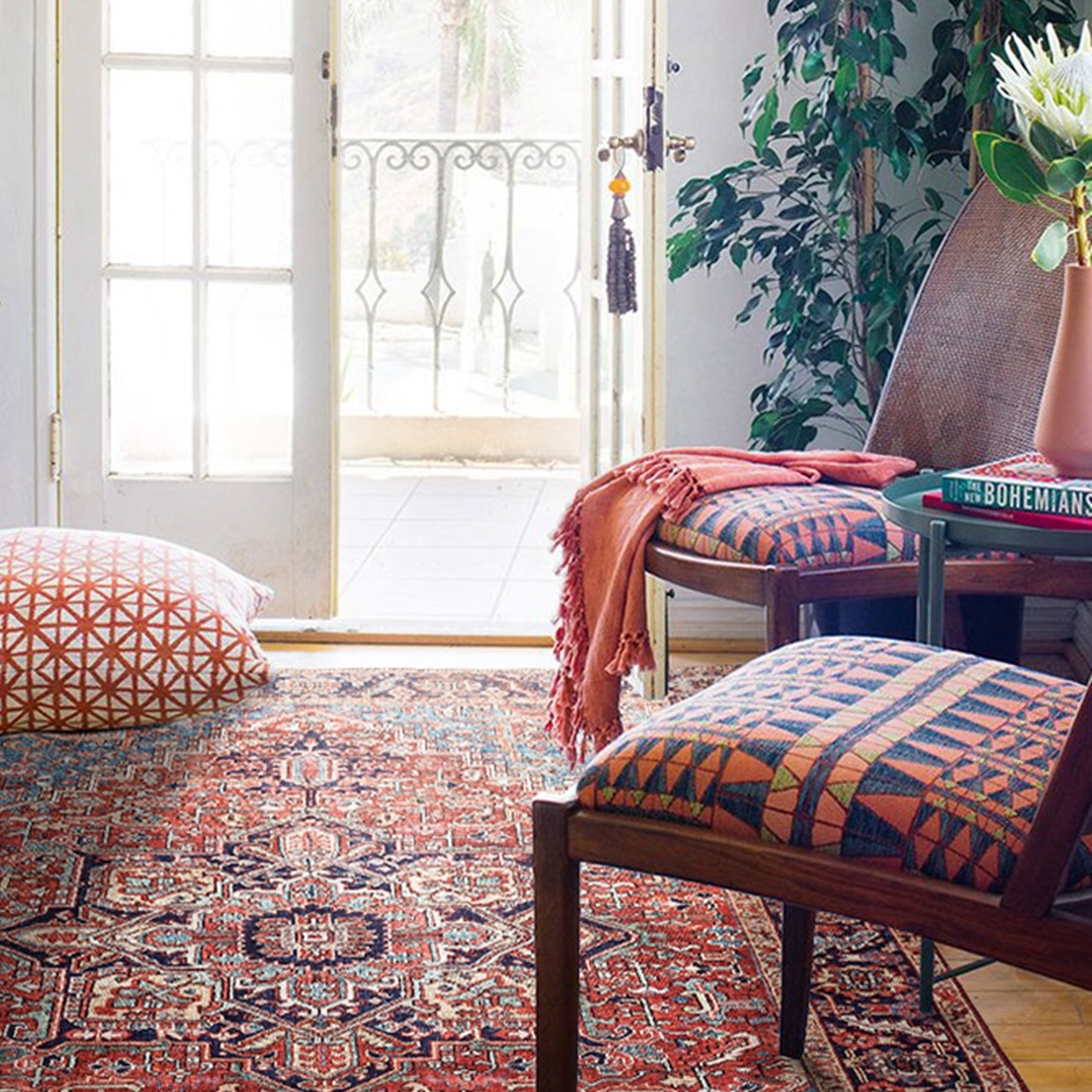 这款波斯地毯布满异域复古花纹图案,搭配色彩缤纷的颜色,带来波西米亚家居风格。活性印染工艺,色彩绚丽美观。