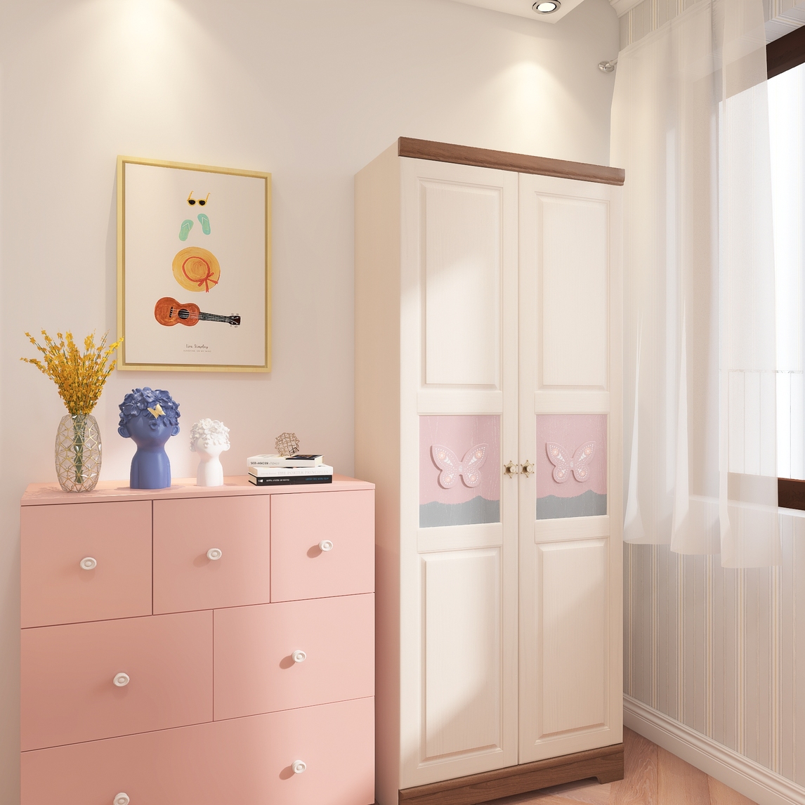 小公主的房间,大多会采用一些粉色的设计,粉色的储物柜,不同的抽屉满足不同大小的储物需求,简约大容量衣柜,收起孩子的玩具衣物,打造温馨又少女的儿童房。