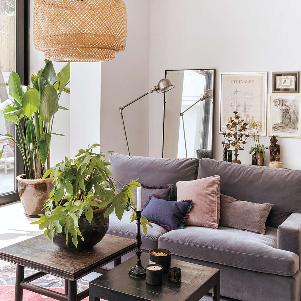 从老市场淘回来的漆面小边几、镜子和落地台灯,经过时光的沉淀,带来令人沉静的风情。中式传统的陶罐做为花盆和藤编的灯具,朴质自然,很有一股古典中式的美感,黄铜的装饰品。