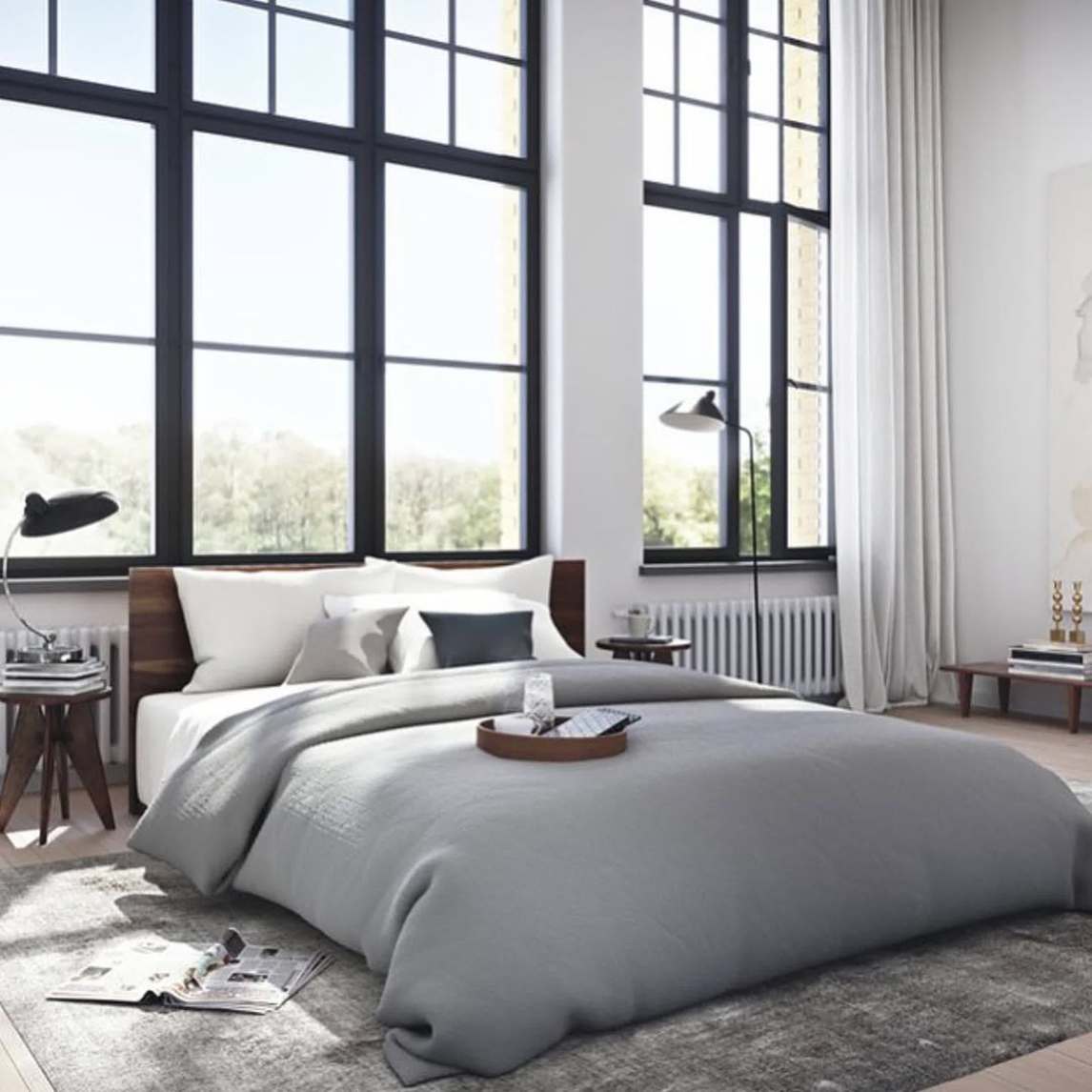窗明几净的卧室让人心旷神怡,但也别忘了注意卧室的私密性,厚重的窗帘能随时隔绝屋外的喧嚣,留给人一个安逸的空间,纯色被套十分素雅,纯碎的单一颜色带来心灵上的放松,搭配有肌理感的地毯,又能丰富视觉效果。