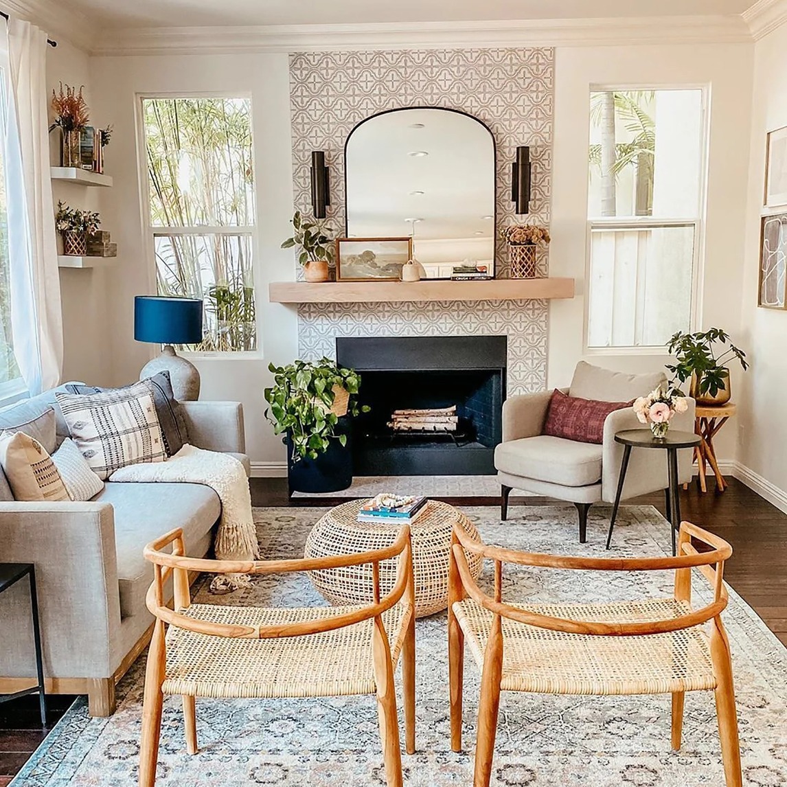 这间非常典型的法式田园风客厅设计,无论是作为家庭聚会场所还是一个人的午后小憩地带都非常合适。复古的花纹大地毯搭配上清新的编织木椅以及撞色系小沙发,带着温馨优雅的复古美,它的法式壁炉设计加上各种植物装饰...展开