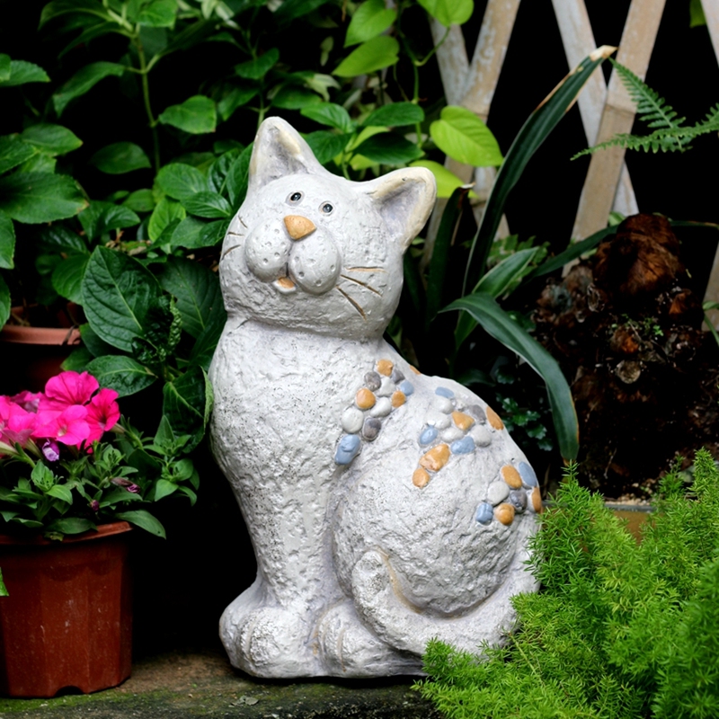 当花园的草丛中突然冒出来一个可爱的小猫时,是不是会有很大的惊喜。那么你可以在庭院中摆上这款创意的小猫摆件,粗犷但不粗糙,具有生动的灵气,能让花园加充满生机哦。
