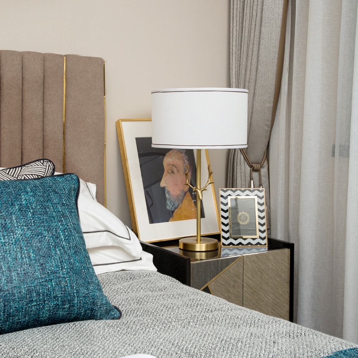 这款台灯以简约的风格设计制作,其整体白色灯罩加上金色金属柱体,给人轻奢的质感。上面麋鹿角在灯柱中间,寓意着福禄双全,散发出的光色更加美观,给人新颖时尚的居家环境。
