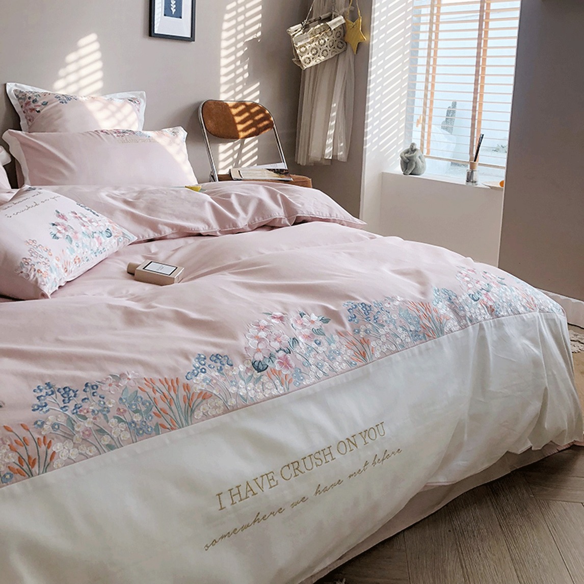 采用60支长绒棉面料,触感细腻柔软,贴身舒适,一簇簇细小的花卉刺绣,更将这份冬天的暖意肆意开来,田园小清新花朵刺绣,清新唯美,加上粉色调,温柔少女~