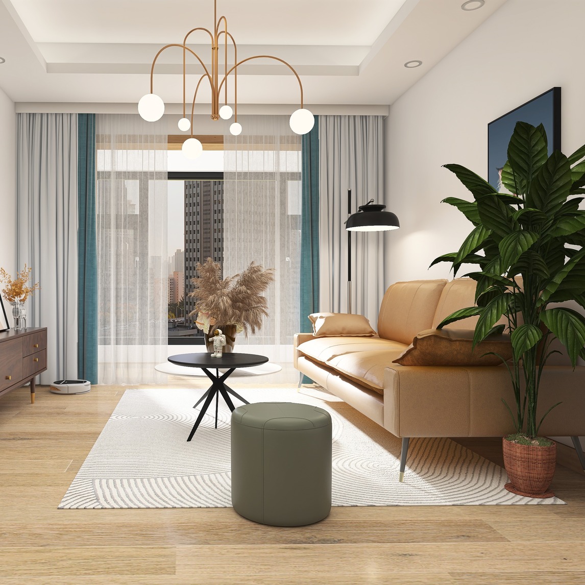 在浅灰色空间增加一些蓝色系的装饰,或是挂画、或是窗帘。柔和的色调打造出最优雅的家具本色。再添加一些绿植的元素。