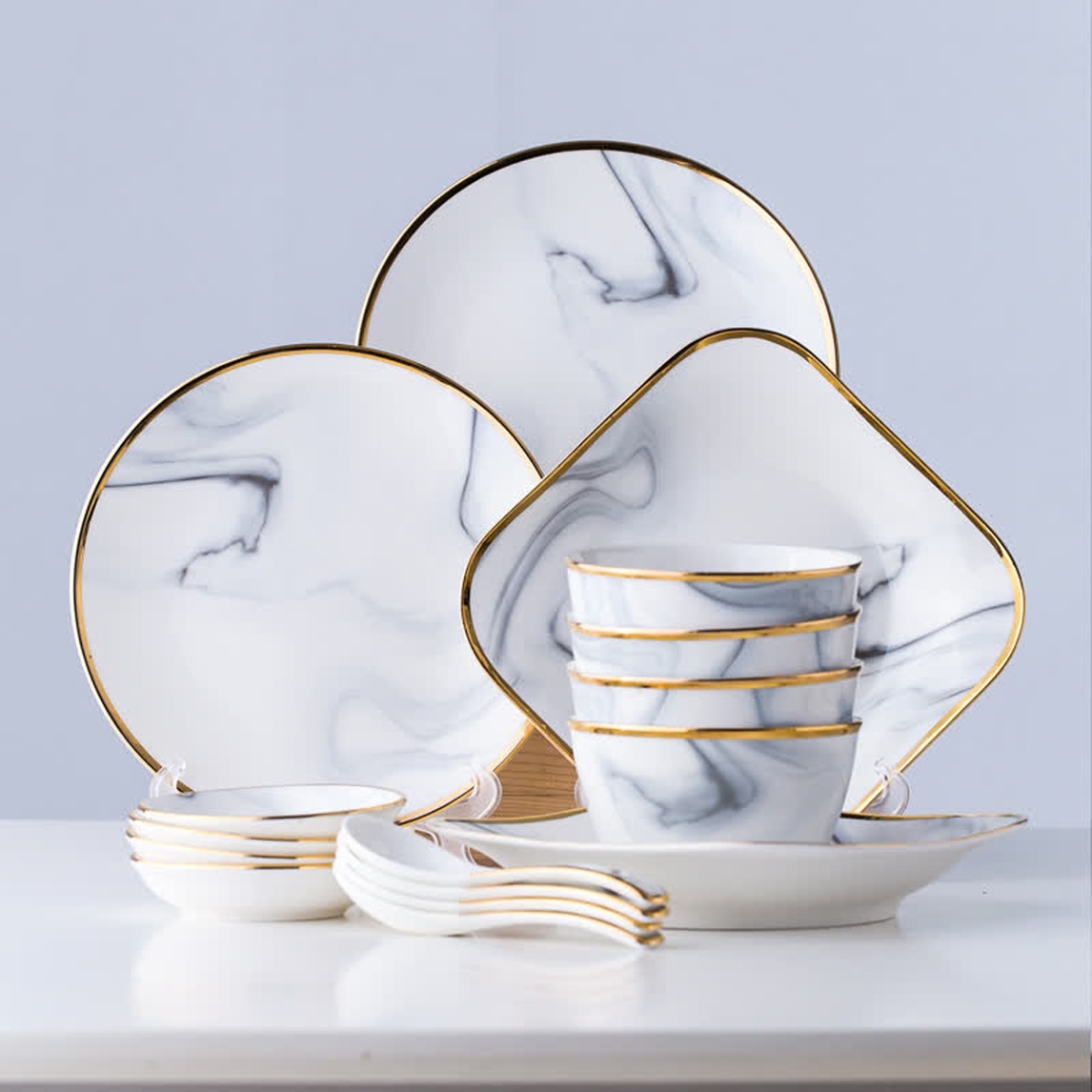 手工描金边的装饰,看着格外美观,能引人注目。白色与金色的搭配很协调,同时也能彰显家居格调。简约流畅的线条,勾勒出平凡世界的美,为整体增光添彩,带来更高的视觉感。各种配套的餐具应有尽有,让您更省心。