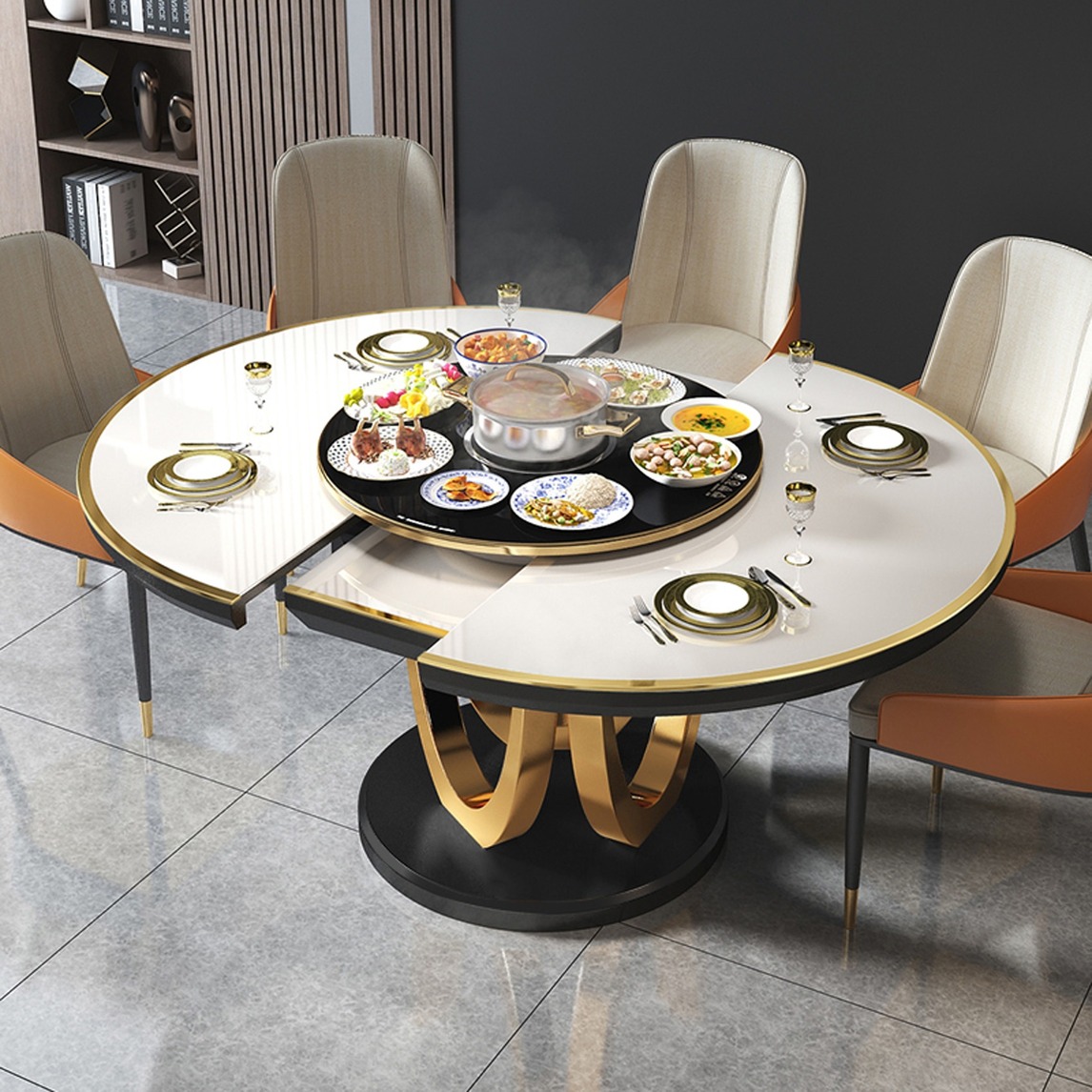 优质钢化玻璃面,有效防止吃饭时汤汁对板材的直接伤害,防水防刮,烤漆工艺,镀金饰边,不锈钢镀金饰件与光亮烤漆面诠释轻奢高贵气息。
