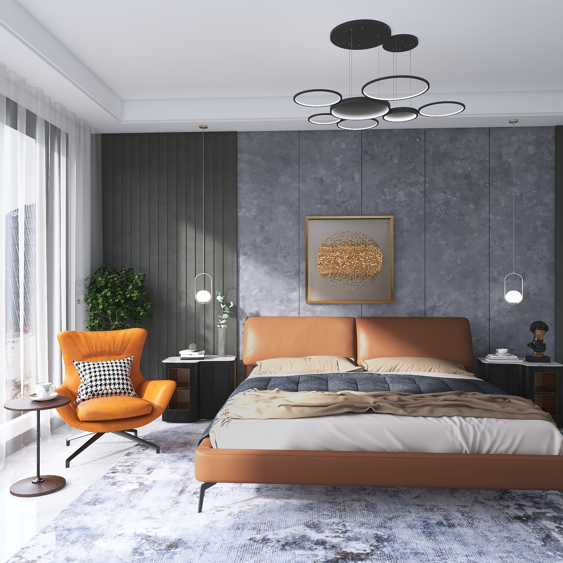 空间用色彩的纯度传递细腻的质感。造型简洁,线条流畅的家具组合搭配,营造出稳定、协调、温馨的空间感受。