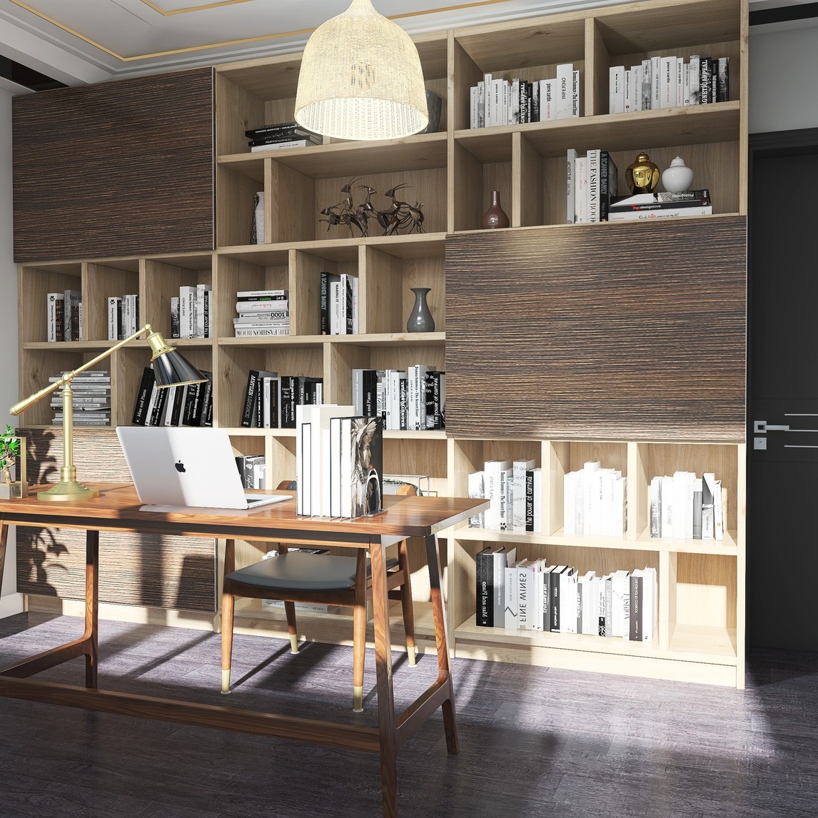 木地板与书香碰撞出复古风书房