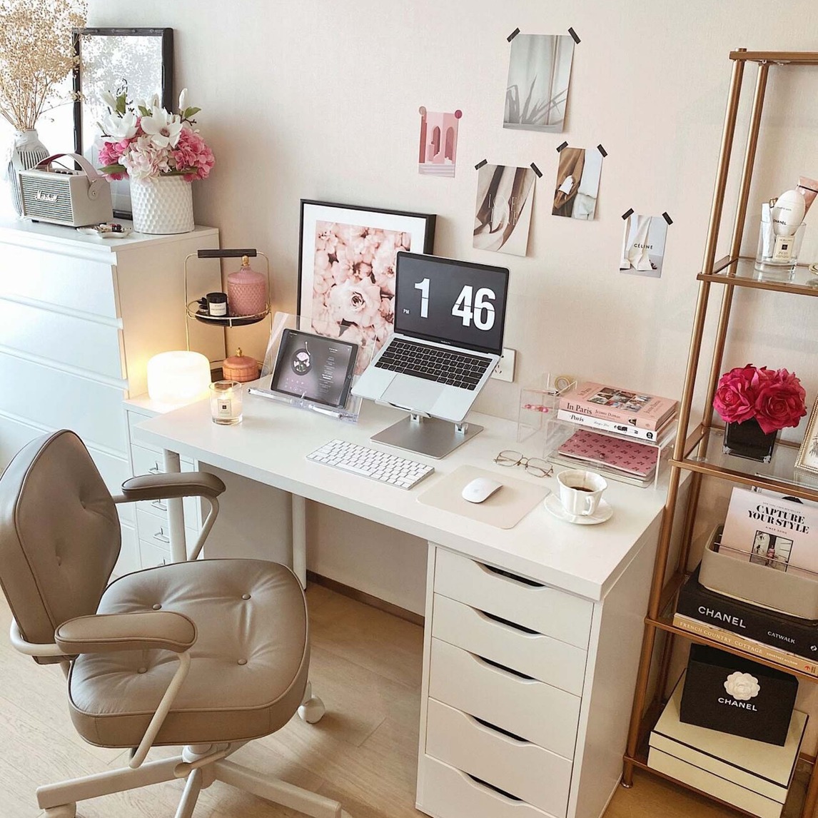 这个电脑椅坐上去很柔软,座位前后都可以调节的,真的非常舒服,我选了一个耐看的米色,坐久了也不怎么累。还有白色的宜家椅子也很好用。