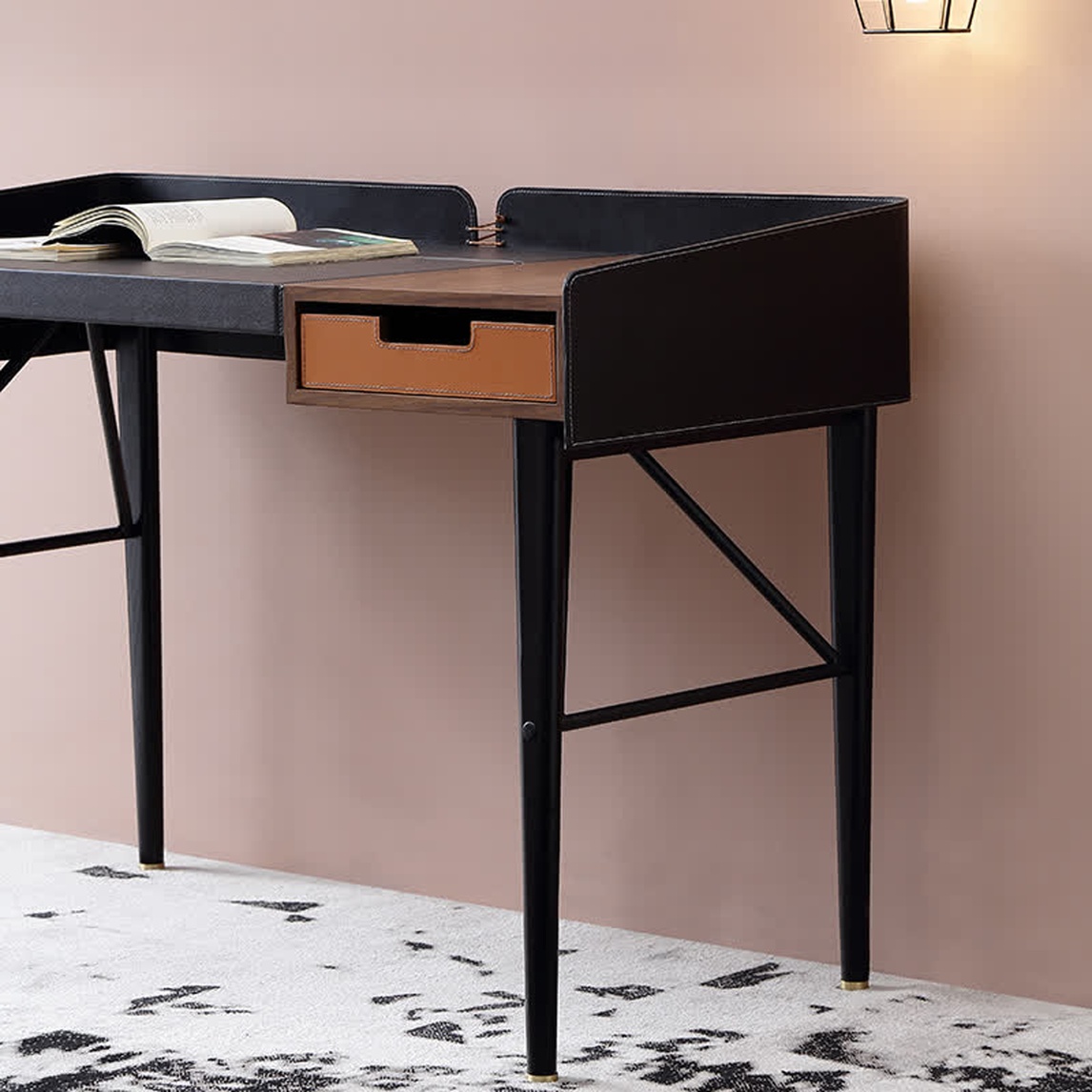 书桌在桌面一周采用了围边的设计,能够有效避免物品掉落的状况发生,让你使用更安心。搭配上皮革覆盖的设计,可以带来更加耐用的优点,同时又呈现出了多元化的视觉层次。实用的抽屉设计,能够保证桌面的干净整洁,满...展开