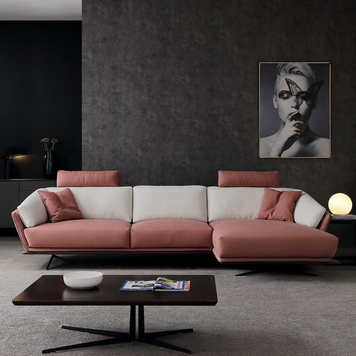 在轻奢风客厅中,可以看见那些饱和度较高的色彩,例如棕色、粉色等,这些色彩相对比较鲜艳亮丽,可以带给人一种非常强烈的视觉冲击,让客厅更显华丽精美~