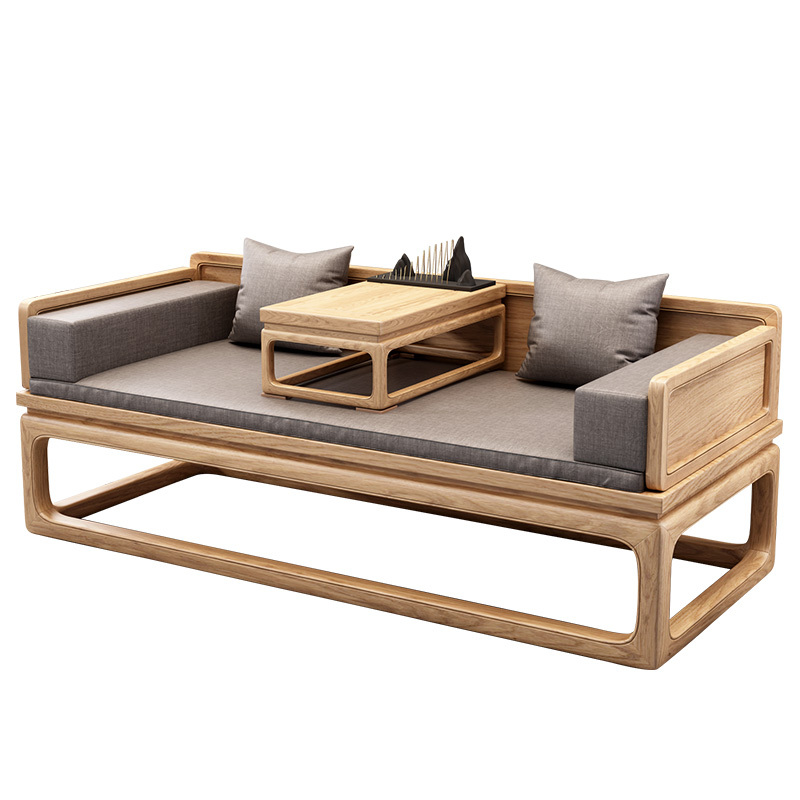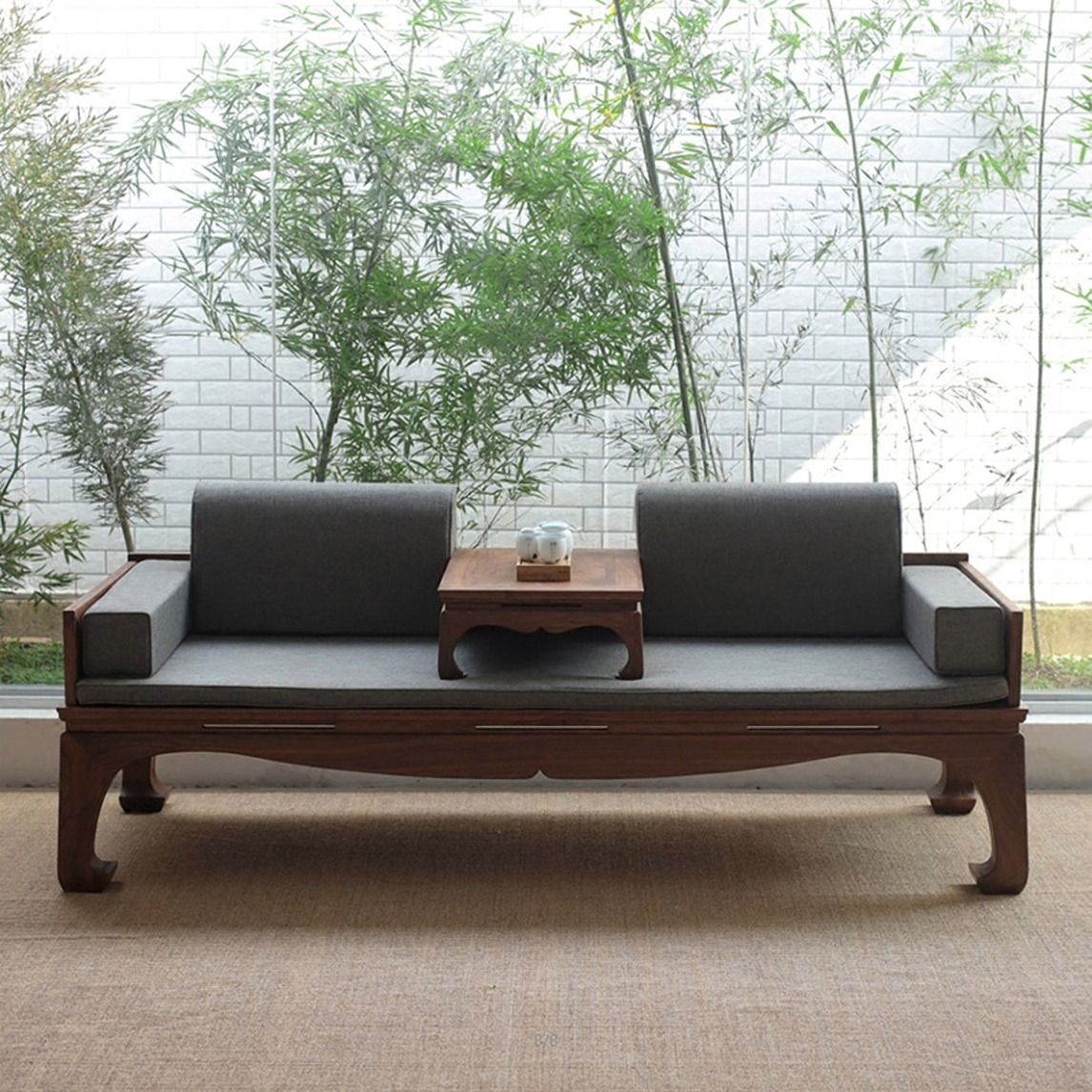 罗汉床,放在新中式的客厅里,既是沙发,也是卧榻,整体线条简约自然,清雅舒适的视觉感,有种偷得浮生半日闲的惬意。