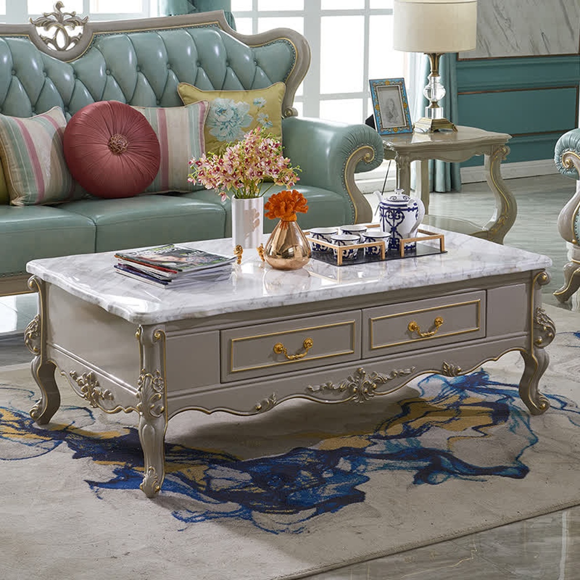 复古大气的实木大理石茶几,低调却彰显出十足的轻奢品质,通体采用优质的框架材质,搭配以复古选色,更具时尚美感。立体的欧式雕花精致非凡,轻松勾勒典范家居。