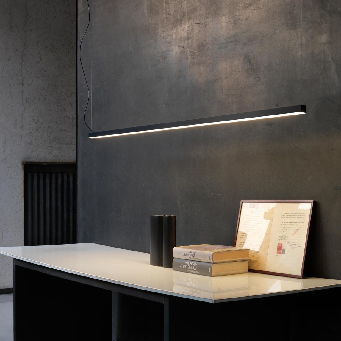 书房予以黑白灰现代简约几何构造的摩登感的轻工业风,搭配与质感的艺术元素韵律着空间,充分发挥与收纳美学结合的视觉冲击。金属冰冷的调性与实木的亲近感混搭,在粗犷外表下掩藏其中的时尚张力与精致享受。