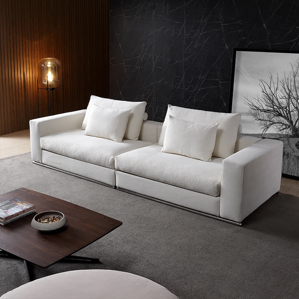 入眼便是极为沉静的深灰色调,泛着微妙的冷感,成为客厅的格调装点。笔挺的线条,勾画出板正的轮廓与分明的棱角,气度不凡,更是对意式极简风最好的诠释。宽大厚实的坐面,与挺拔扶手相呼应,给人最为妥帖的包裹感,...展开