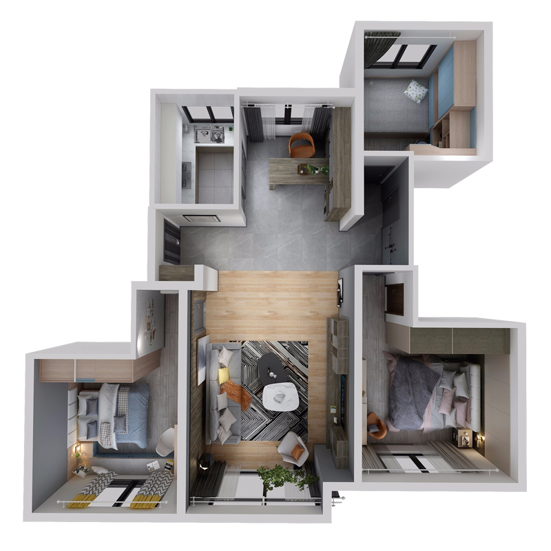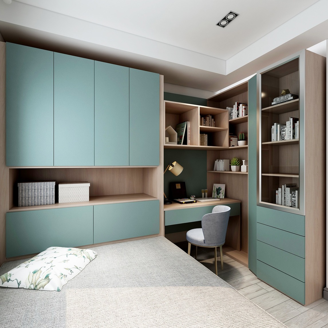 本案为现代简约儿童房设计,适合家里有独立小房间的。莫兰迪蓝色是当天流行的颜色,运用在家具上,特别是在儿童家具上添加几分愉悦,让孩子渡过欢乐的童年。儿童房整体设计简约又不失功能。榻榻米床、衣柜、一体式书...展开