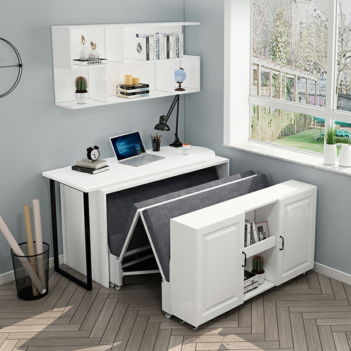 小户型省空间神器,办公桌折叠床,折叠床+旋转办公桌,一套可以解决办公和休息的家具,一款精致的折叠床,伸缩设计节省空间适合不同大小的户型,一柜多用只为解决居家烦恼。