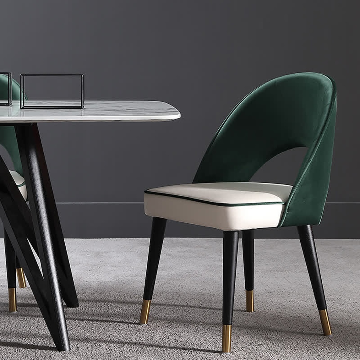 椅背线条的弯曲弧度根据人体工学原理设计,保证在就坐时紧贴腰部,无论或坐或靠都给腰部一个舒适的空间。椅背以墨绿色高品质丝光绒包裹,丝光绒表面细小的绒毛带来绵密顺滑的触感,搭配上米色棉麻座包,将北欧风情的...展开
