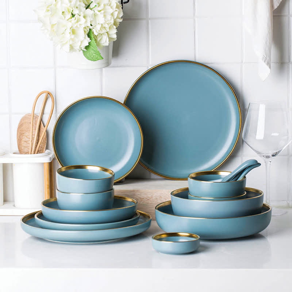 充满现代风格的一款陶瓷盘子,采用哑光蓝色的样式,既清新淡雅又更具低调的高级感。同时,在边缘加入金色的装饰,增添华丽的靓丽的感,以及精致的格调。而平整的盘底样式,搭配上圆润的转角和加高边缘,则带来多功能...展开