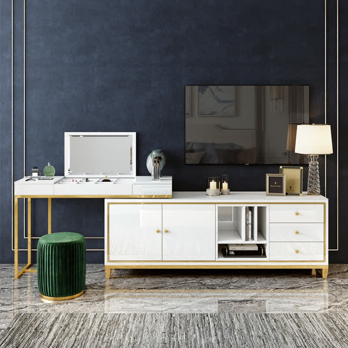 为了让妆台呈现出简约美,我们将化妆镜做了隐藏设计,掀开桌板,妆镜立现,简单便捷。分格分区收纳小物品,精心设计布局,物品摆放井然有序让生活更便捷,让家更干净整洁。