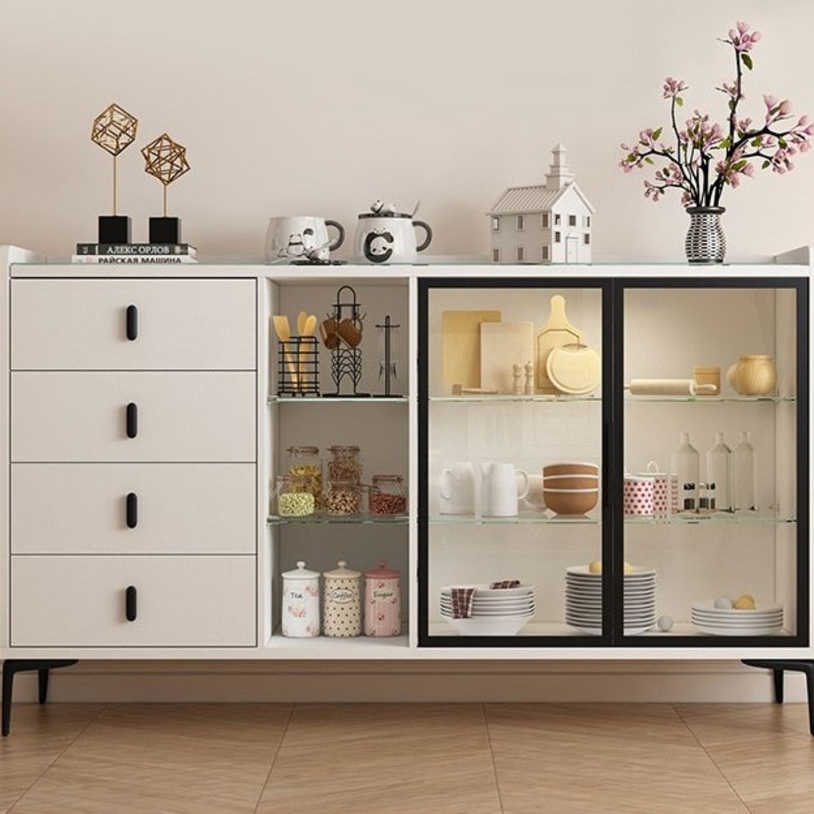轻奢智能餐边柜,关键词:LED智能感应灯,防爆钢化玻璃,更多元化的储物,防摔桌面围栏设计,符合国家安全标准,放心购买。
