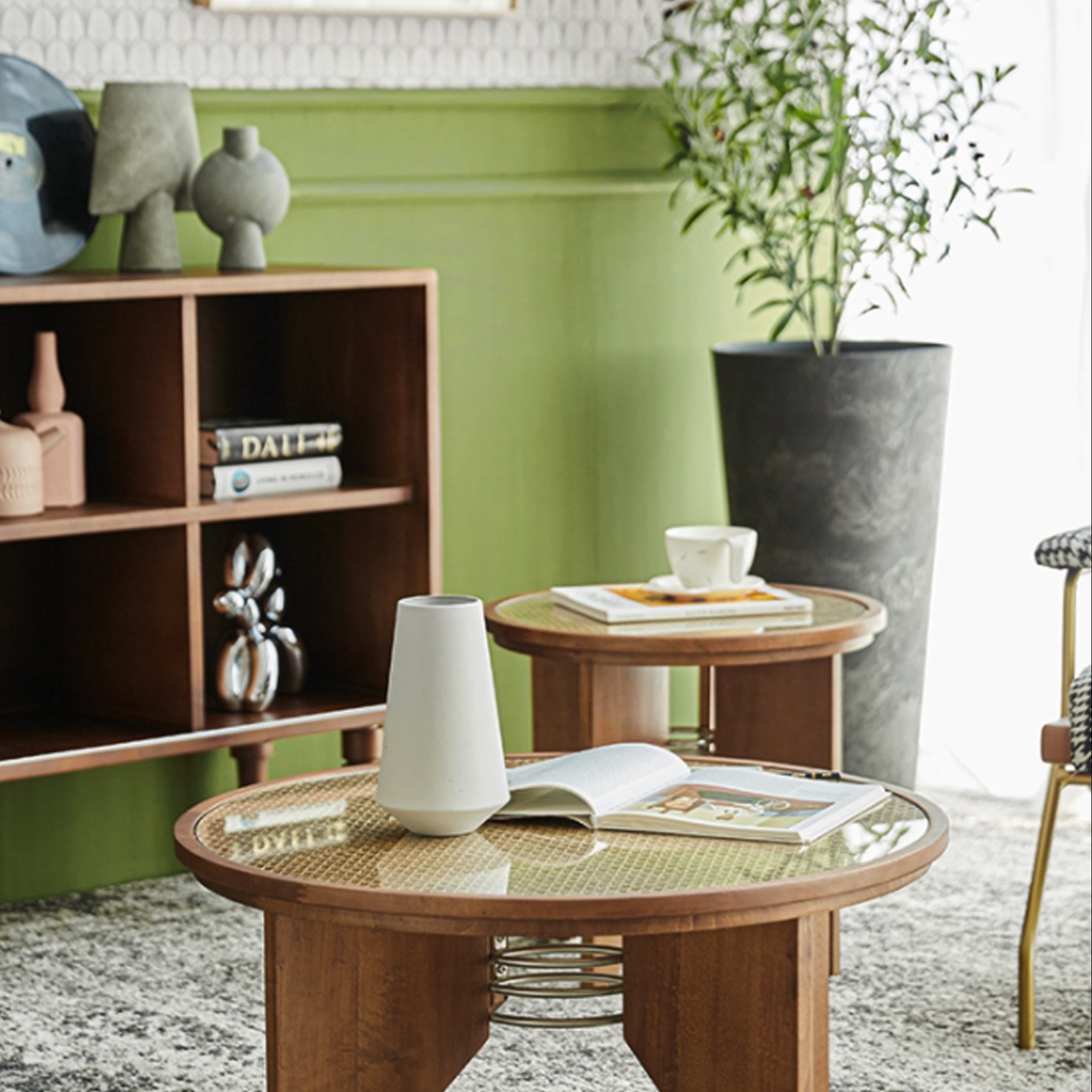 一点点的别具匠心就能给平淡的日子带来惊喜,经典藤编与玻璃几面的组合,打破了传统木质茶几带给人的沉闷感,配上温柔的地毯和几件精美的摆件,流露出轻奢法式风情。