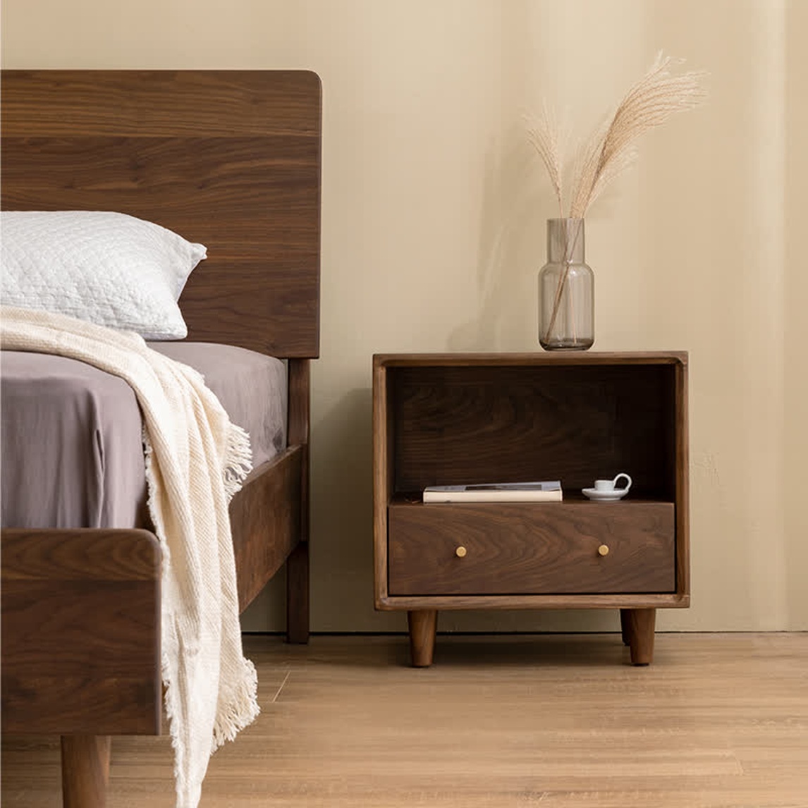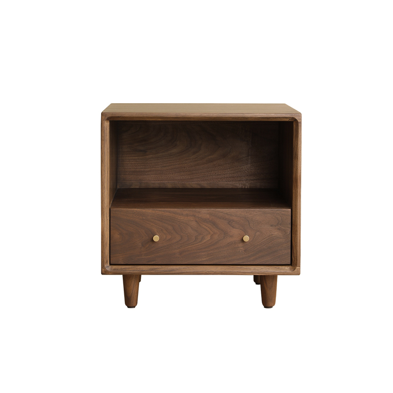 这款床头柜主材为北美FAS级别黑胡桃木打造而成,抽屉底板和背板为EO级纯环保多层实木板,木质坚硬,结实耐用。表层涂装采用碧欧木蜡油,漆面附着力强,光泽自然优雅,搭配完美的纹理质感,凸显怀旧的美式风韵。