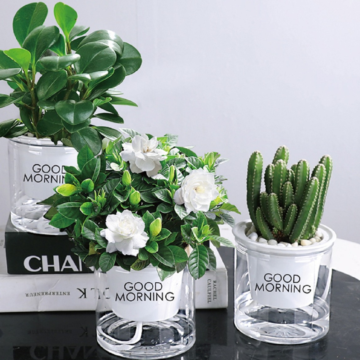 一款适合懒人的盆栽,采用360°高透材质,水位一目了然,可爱的文字温馨而有趣,让心情美好的一天,从一声“Good morning”开始