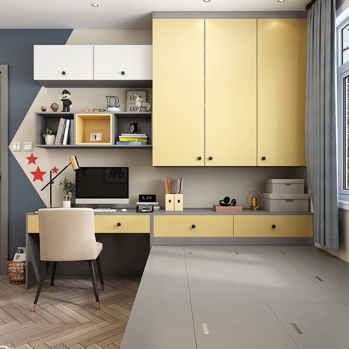 多功能组合,卧榻+衣柜+书桌+书架+玩乐+会客,简约而不简单。充裕的储存空间,让孩子能勤快的整理物品,更会独立的梳理知识。