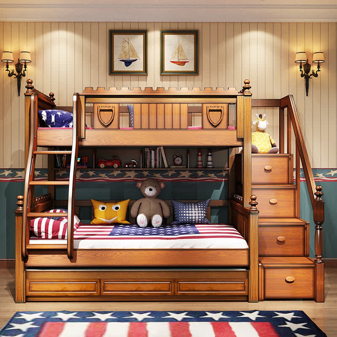 一张舒适的床对孩子的成长起到很重要的作用,整体框架为纯胡桃木打造,表面开放式喷涂油漆,保留了原木的纹理,在温暖的阳光下,闪耀着迷人的气息,贴心的护栏结实稳固,给孩子一个安心的睡眠环境。