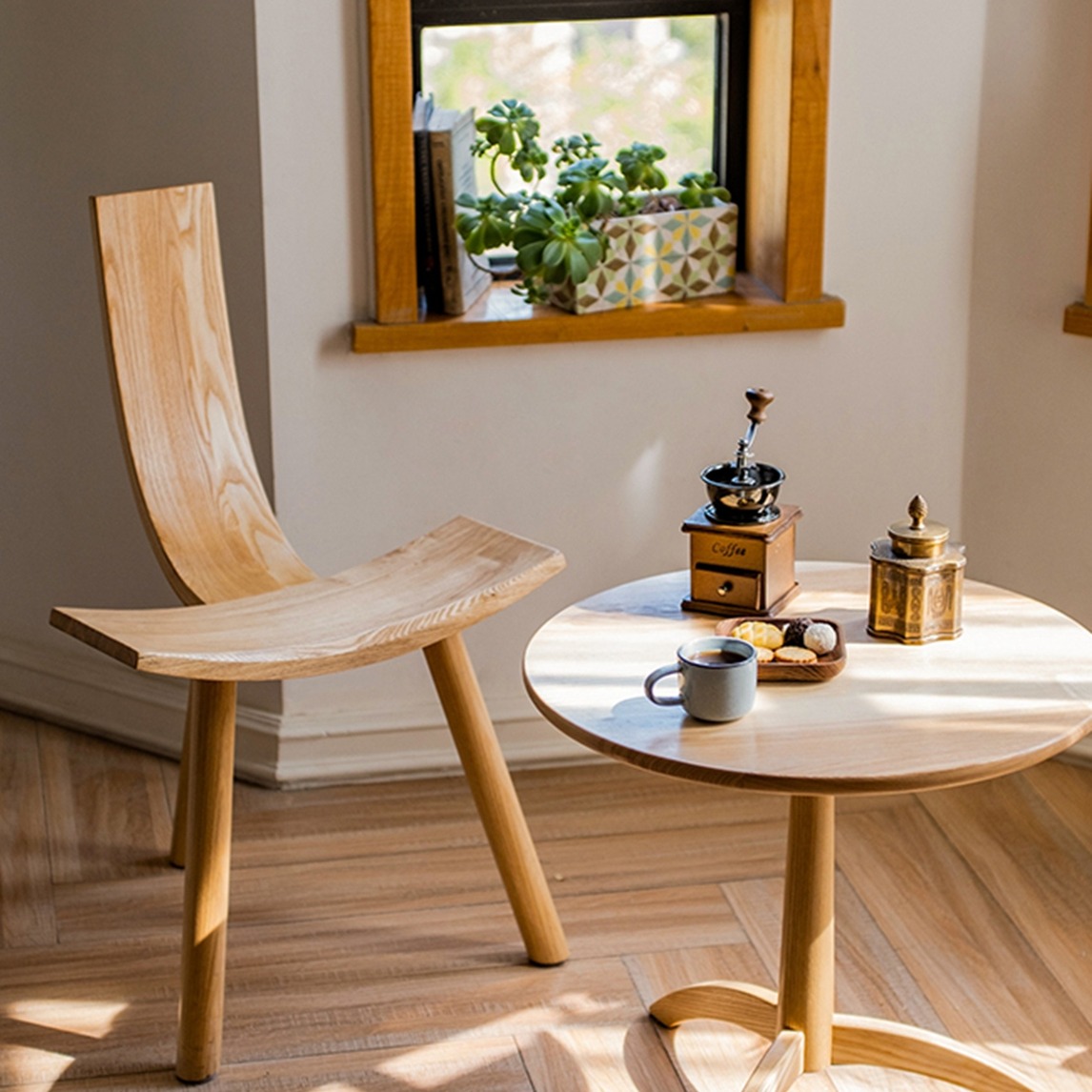 一款简约的个性桌椅,简约不简单,个性不失实用;沏一杯茶,午后的阳光明媚不刺眼,打造专属您的休闲空间,过诗意生活。