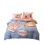 牛奶绒加绒四件套,加厚加密面料,迅速升温,抗寒保暖新升级,冬天再也不用担心会冻手冻脚。 清新亮丽的色彩,卡通图案点缀,很适合小朋友。