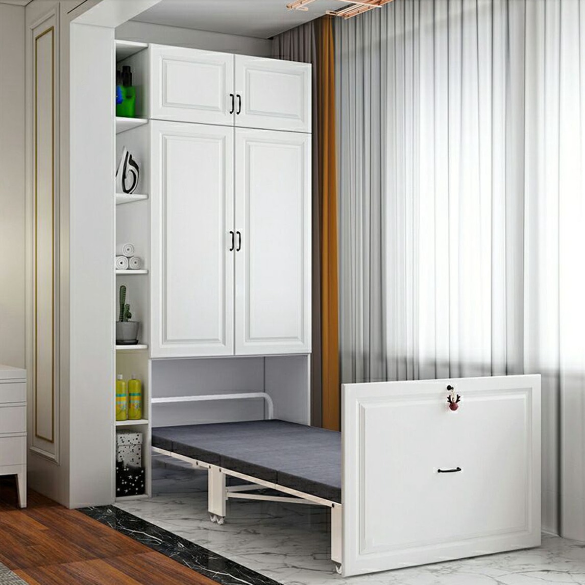 蜗居神器,小户型省空间的贴心选择,隐藏在储物柜里的单人床,轻轻一拉即可转换形态,伸缩自如,合理分配空间,轻松多出一间房,隐形折叠阳台柜储物、休息两不误。