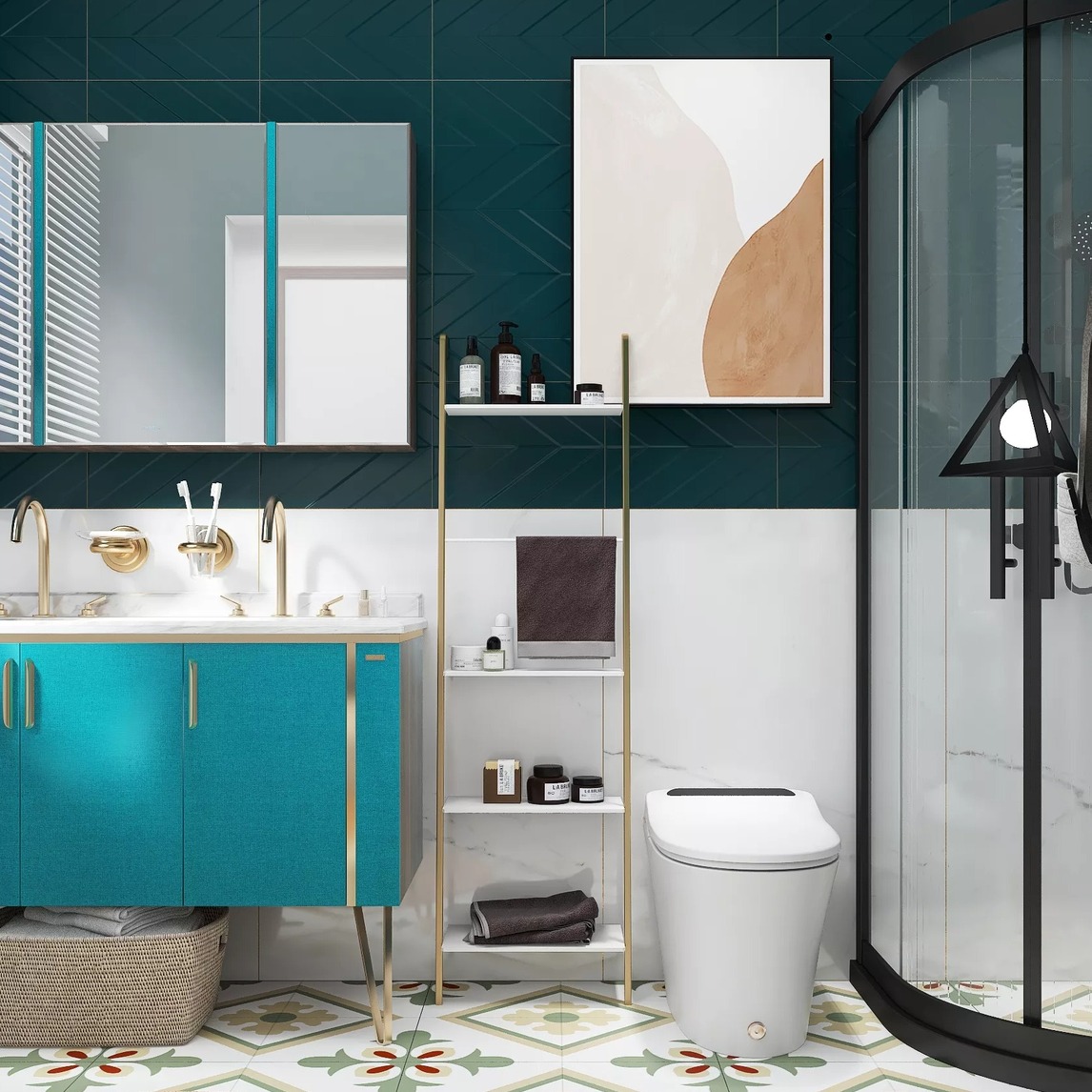 浓烈的复古绿优雅耐看,搭配具有设计味的地砖,别有一番风情,凸显的主人独特的品味,照着搭,在家也能玩复古。